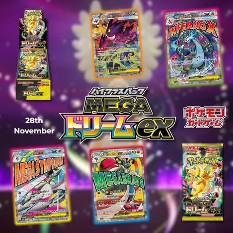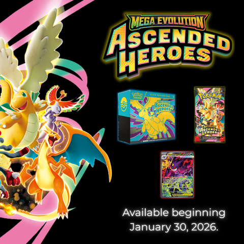 Marvel at the awesome potential as Mega Dragonite ex takes flight, leading a gathering of all-star Pokémon to battle! Trainer’s Pokémon and Stellar Tera Pokémon ex join returning and newly discovered Mega Evolution Pokémon ex, including some with special artwork showing off their biggest and boldest attacks. Celebrate the stars of Scarlet & Violet and the dawn of Mega Evolution with the Pokémon TCG: Mega Evolution - Ascended Heroes expansion!