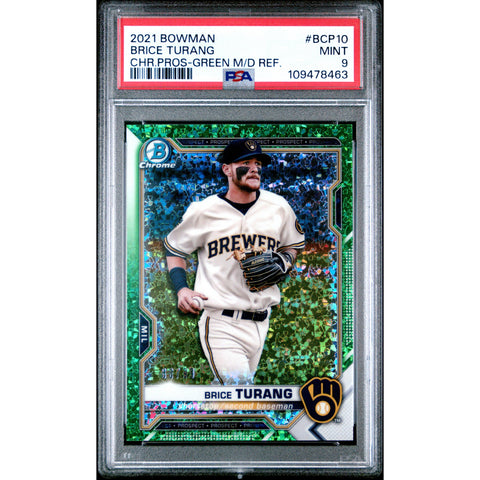 2021 SPORTS BOWMAN CHROME PRICE TURANG GREEN REFRACTOR BCP10 PSA 9